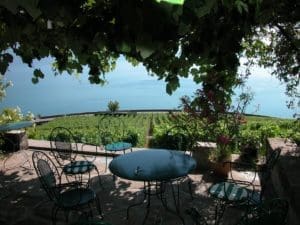 Le Château Montagny, qui surplombe la corniche en dessus de Lutry, est un des fleurons de la Cave L’Abbatiale (sous ce nom se cache discrètement la ville de Payerne, propriétaire des murs et des vignes depuis le XVIe). Le domaine, qui a pris un grand coup de jeune en 2019 avec l’arrivée d’Arthur Pidoux (à la vigne) et de Gilles Musy (à la cave), collectionne les médailles ès chasselas ; mais c’est aussi pour la terrasse -spectaculaire- qu’on fera le déplacement, Wolfer et nous !